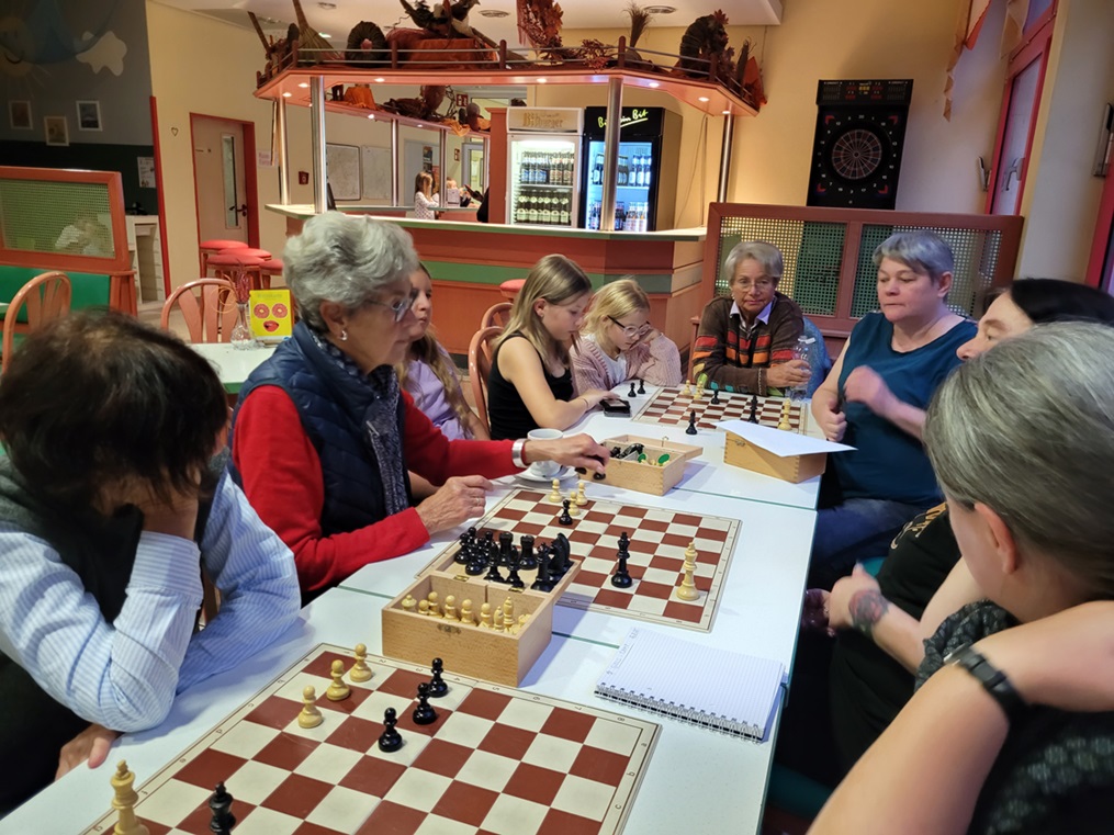 Vor dem Essen spielten wir zur Entspannung noch ein paar spannende Partien mit Coaching durch Elke .