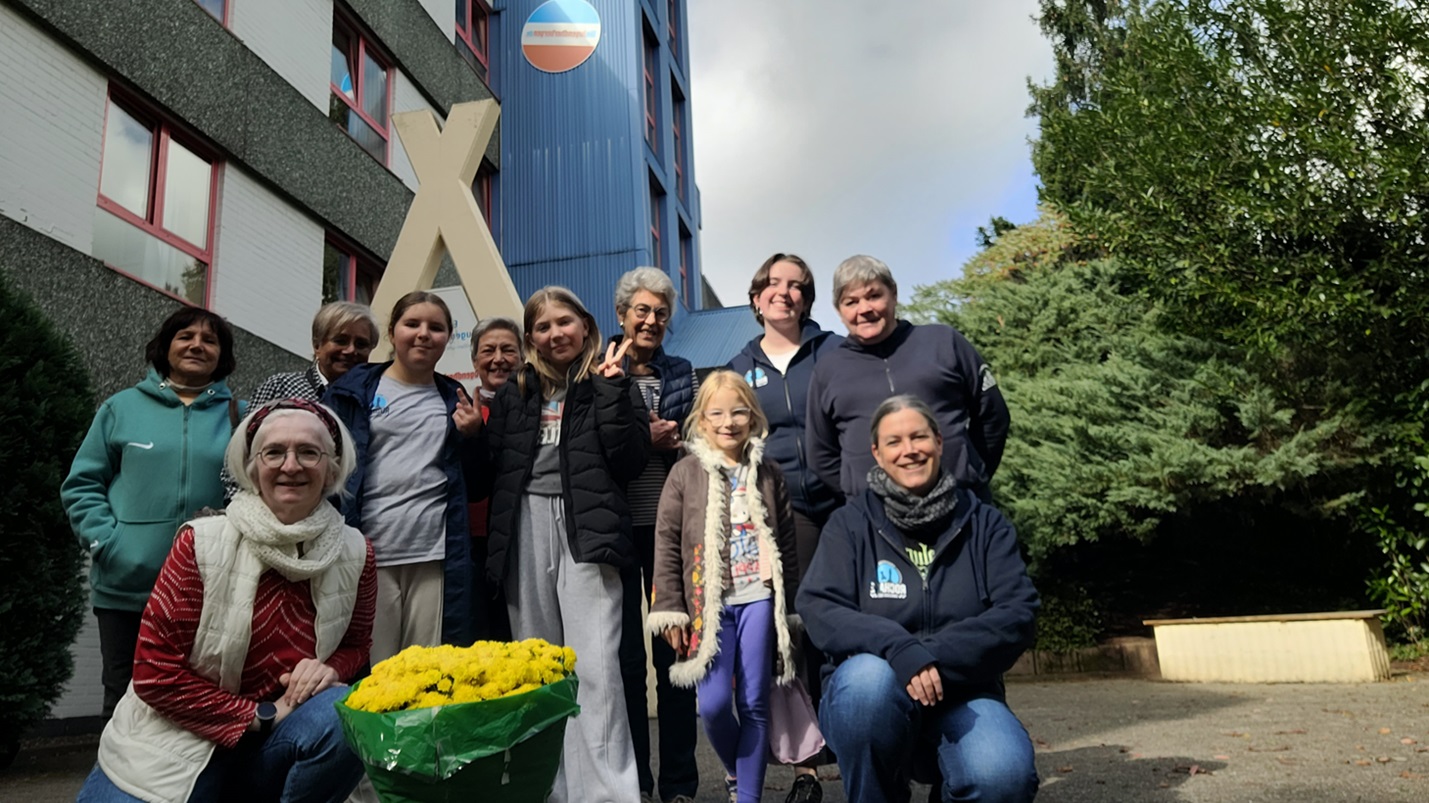 Ganz zum Schluss überreichten die Teilnehmerinnen Elke noch einen riesigen Blumenstock als Dankeschön für das Training und die Betreuung.