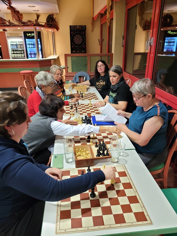 Vor dem Essen spielten wir zur Entspannung noch ein paar spannende Partien mit Coaching durch Elke .